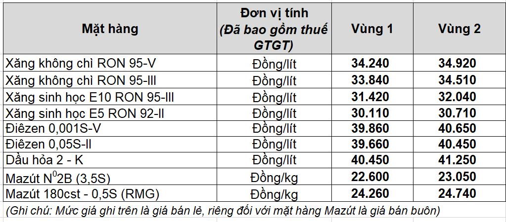 Mức giá mới có hiệu lực từ thời điểm 23 giờ 00 phút ngày 24 tháng 3 năm 2026 cho đến kỳ điều hành giá xăng dầu tiếp theo của liên Bộ Công Thương – Tài Chính; được công khai tại website petrolimex.com.vn và các Công ty xăng dầu thành viên Petrolimex.